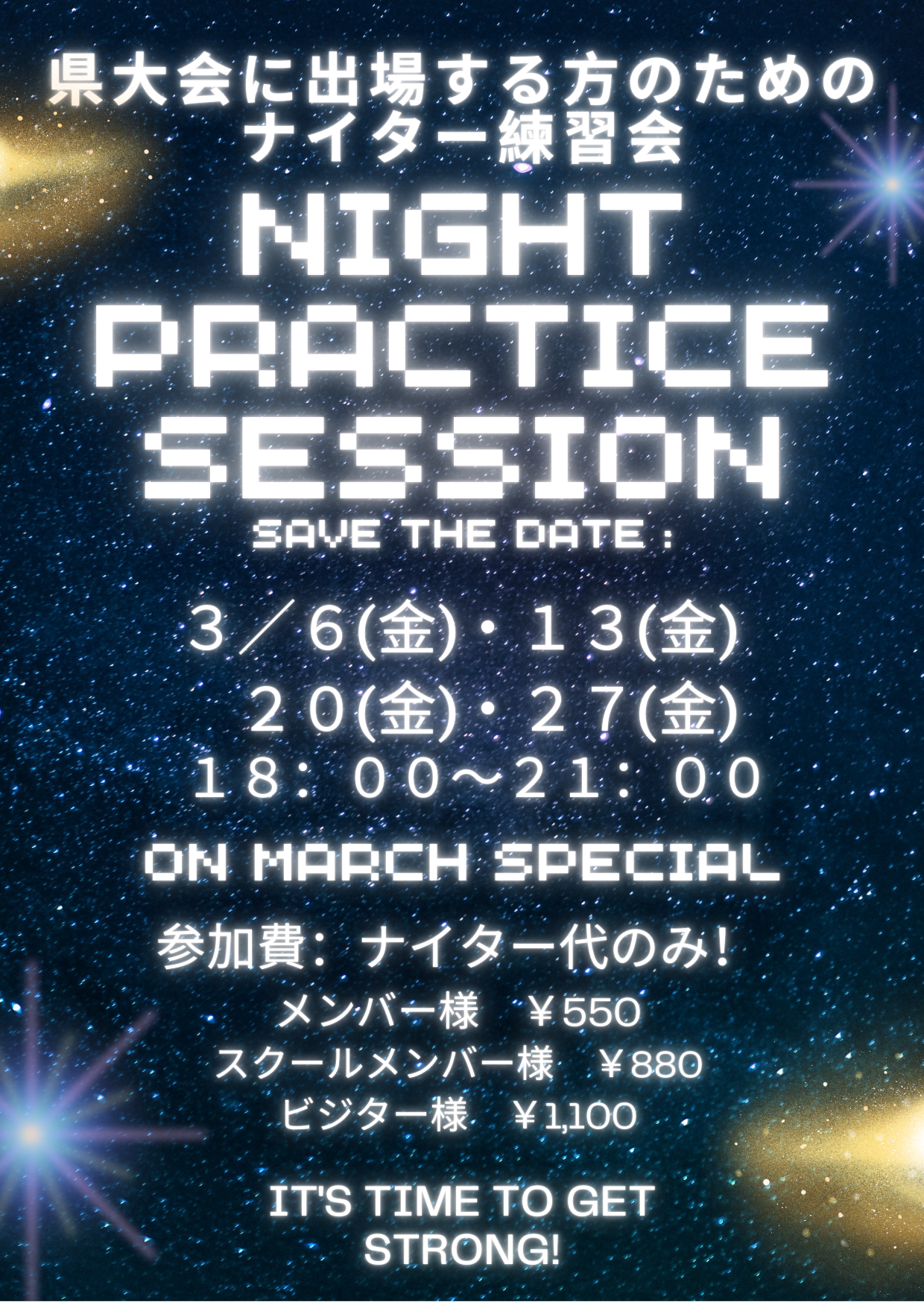 HOME > お知らせ > 3月の金曜夜は「ナイター練習会」に集合!